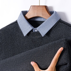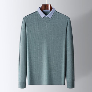 2025年新款针织假两件长袖T恤男纯色轻商务男装批发针织打底衫男