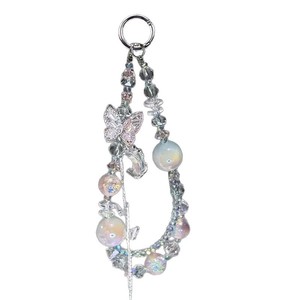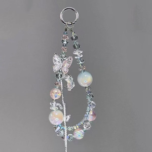 晚月蝶~甜美水晶串珠蝴蝶流苏手机挂件时尚小清新包包手腕链挂饰