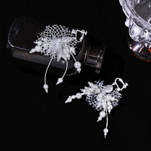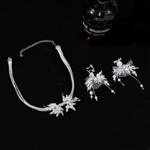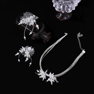 新款小众设计绳结珍珠项链超仙蕾丝耳饰婚纱礼服发饰结婚新娘头饰