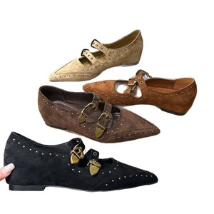 2025秋款设计款内增高尖头铆钉浅口单鞋女平底玛丽珍鞋