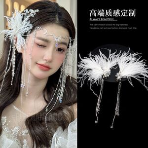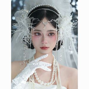 原创设计手工流苏纱花仙美羽毛串珠新娘头花婚礼配饰影楼跟妆头饰