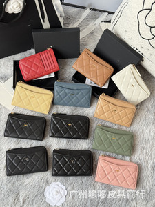 高品质爆款小香风真皮大容量钱包通用多颜色鱼子酱菱格短款零钱包