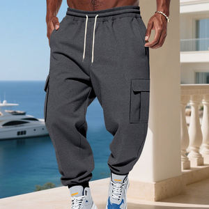 跨境外贸美式秋冬抓绒男式工装裤男士多口袋抽绳纯色运动休闲长裤