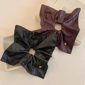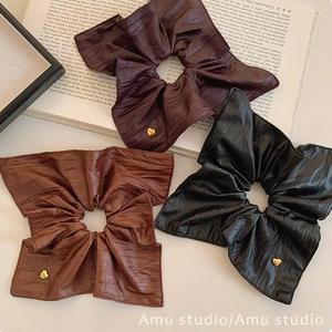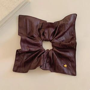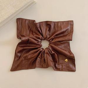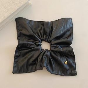 新款皮质爱心方巾发圈大肠圈女韩系方形低马尾发绳扎头发皮筋头绳