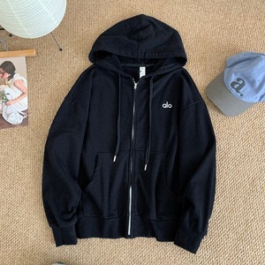 现货Alo 春秋瑜伽运动休闲宽松拉链女士连帽百搭卫衣开衫情侣外套