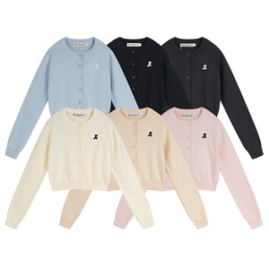 25s韩国潮牌秋季款Rest&Recreation刺绣辣妹修身露脐短裤针织开衫