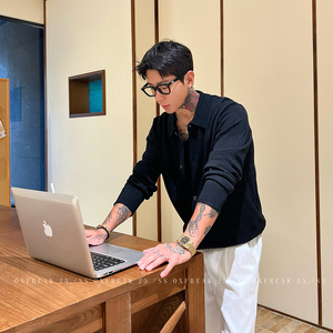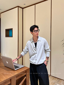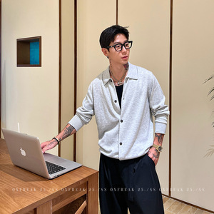 OXFREAK「老钱风 混纺」18针精纺开衫毛衣男高级感翻领针织衫