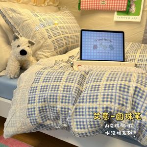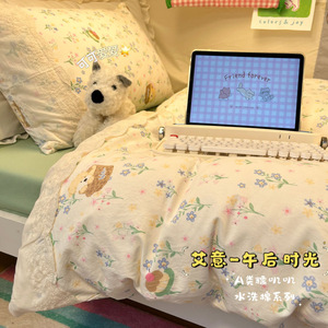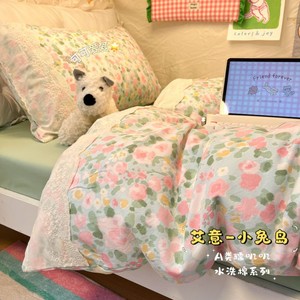 水洗棉床上四件套2025新款公主风蕾丝花边被罩150*180*200单被套