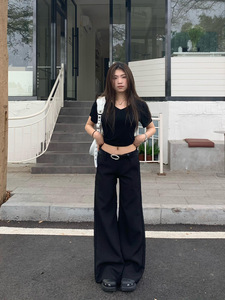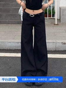 橘子树在哪儿黑色低腰休闲喇叭西装裤女春季高级感垂感宽松拖地裤