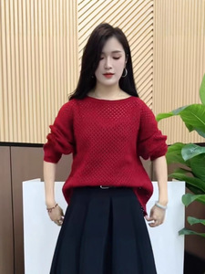 2025早秋季新款韩版时尚百搭圆领长袖针织衫女宽松显瘦毛衣上衣