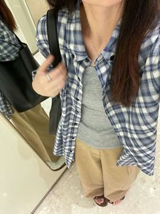 25早秋韩系慵懒风氛围感简约格子衬衫女宽松休闲百搭上衣外套ZH1