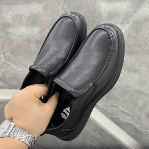 头层牛皮新款休闲时尚百搭皮鞋平底英伦套脚商务正装黑色男皮鞋子