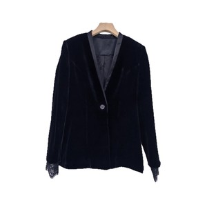 气质女神爆款西装真丝丝绒领口拼接醋酸袖口拼蕾丝➕提花里布外套