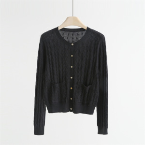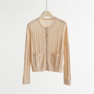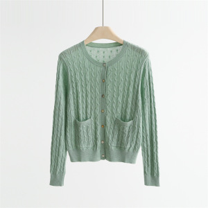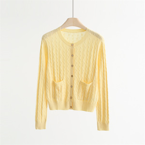 韩系彩色麻花针织开衫羊毛秋冬新款圆领百搭毛衣外套上衣女91126