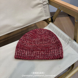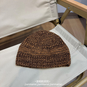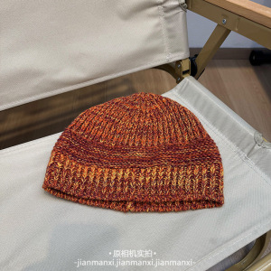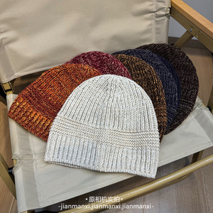 混色彩线针织帽子女早秋韩系ins新款简约百搭针织保暖毛线帽冷帽
