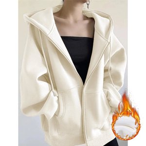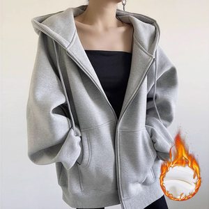 山东即墨卫衣银狐绒宽松连帽开衫外套女秋冬款加绒加厚大码上衣潮