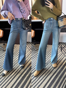 原生漫画腿~!高腰弹力喇叭牛仔裤女2025秋新款修身百搭显瘦长裤