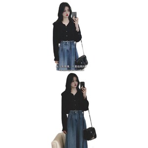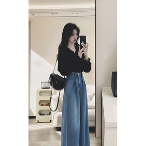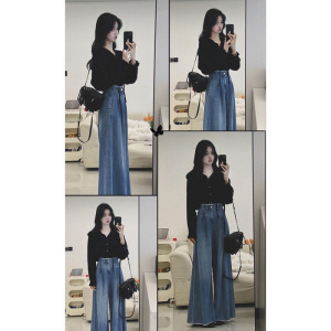 春季穿搭一整套女2025新款休闲复古高级感衬衫阔腿牛仔裤子两件套