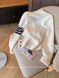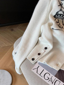 专柜撤回剪标趣味图案V领针织开衫女春秋新款小个子软糯减龄毛衣