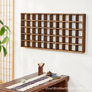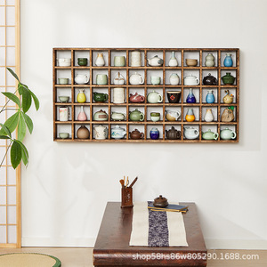 实木博古架新中式多宝阁茶杯茶壶置物架碳化工艺实木胡桃色展示架