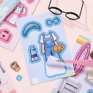 芯陌像素换装贴纸盲盒可爱少女场景换装贴纸本儿童手工拼贴素材纸