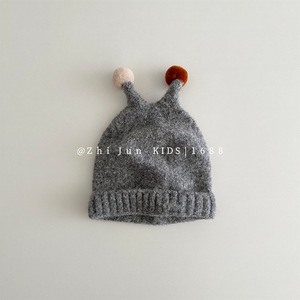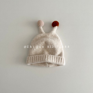 韩版秋冬儿童超萌可爱小触角护耳帽男女宝宝保暖卷边防寒套头帽子