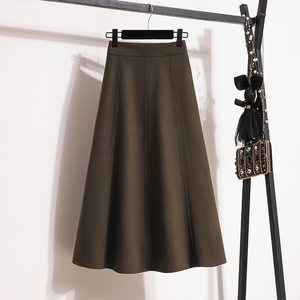 赫本风毛呢半身裙女大码春秋冬胖mm高腰显瘦中长款遮肚A字伞裙子