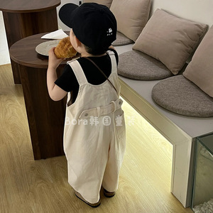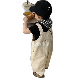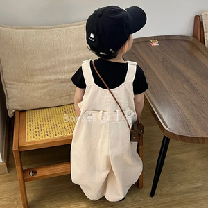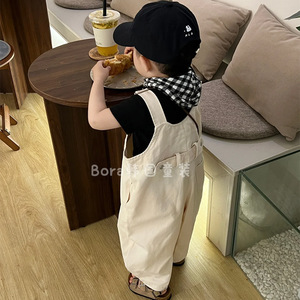 男童裤子男宝宝背带裤薄款儿童夏装2025新款痞帅风洋气白色长裤女