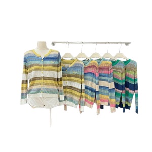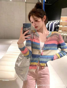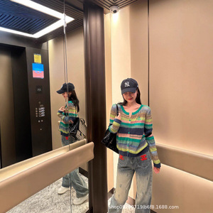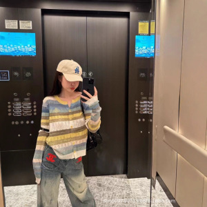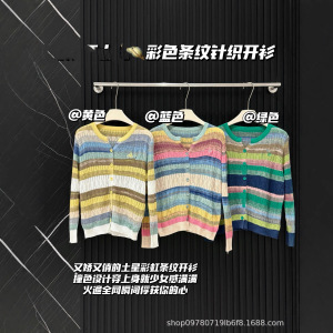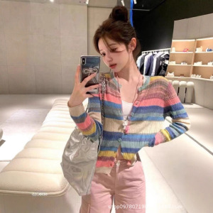 【不支持退货】土星刺绣彩虹活力气质减龄条纹针织开衫上衣小外套