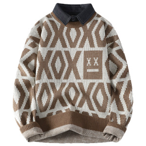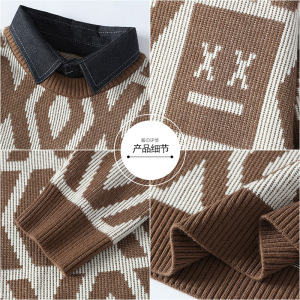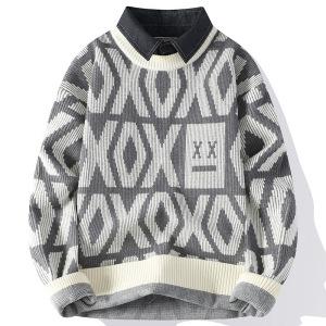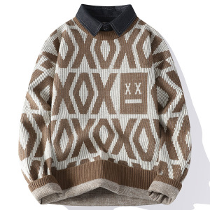 新款秋冬季男士加厚针织衫潮牌衬衫毛衣保暖两件打底长袖线衣外套