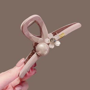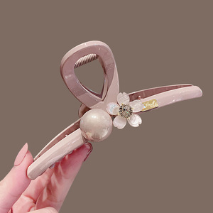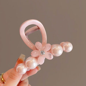 韩国轻奢粉色珍珠花朵大号抓夹2025新款高级感气质盘发鲨鱼夹发夹