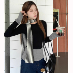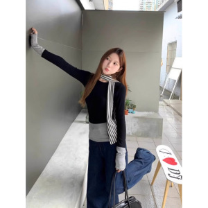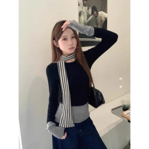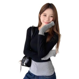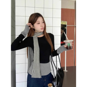 复古港风设计感假两件长袖恤女小众内搭打底衫修身显瘦辣妹上衣秋