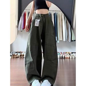 加长版美式高街弯刀工装牛仔裤女新款高腰显瘦宽松阔腿拖地裤子潮