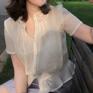 现货Nicepe2025SS 苎麻法蕾拼接短袖爱德华小衫2025秋季新款衬衫