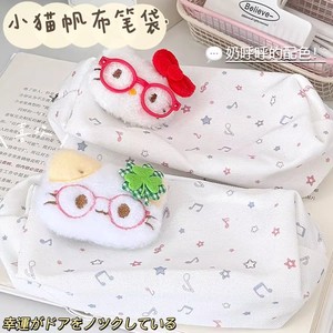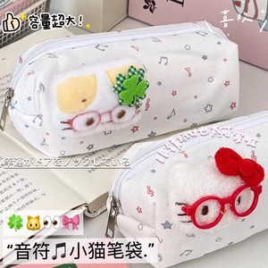 四叶草呆萌猫咪笔袋可爱高颜值印花文具袋大容量学生桌面收纳袋