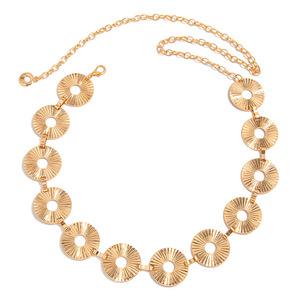 欧美跨境时尚金属镂空圆扇形条纹腰链 个性圆环拼接腰带身体链