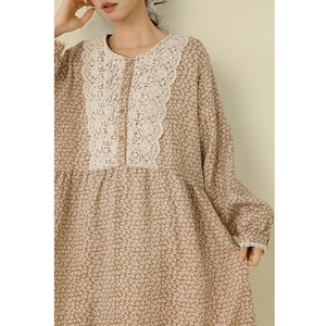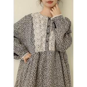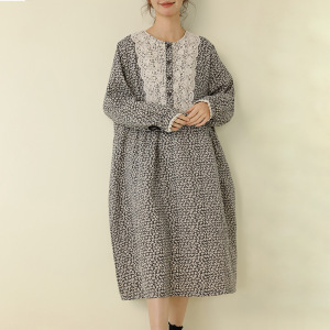 2025秋季新品森女文艺刺绣拼接碎花连衣裙宽松休闲半开襟棉麻长裙
