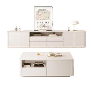 奶油风实木茶几电视柜一体家用客厅小户型轻奢极简落地式双层柜子