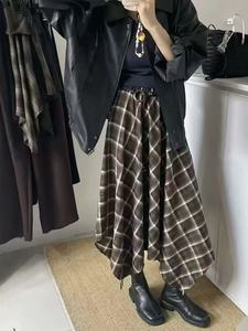 韩系高腰格子a字不规则半身裙女秋季2025新款设计感减龄气质长裙