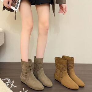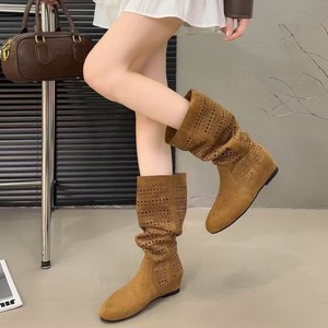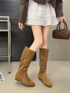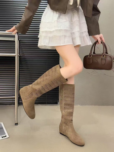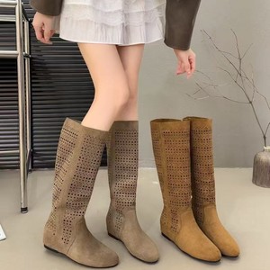 2025年新款秋冬尖头平底中超高跟镂空西部牛仔靴长靴高筒靴骑士