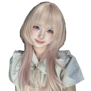 假发女粉色水母头高层次狼尾挑染渐变甜美lolita网红日常全头套