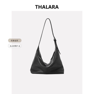 植鞣牛皮腋下经典hobo包简约休闲单肩斜挎通勤包真皮饺子包女