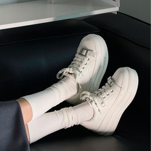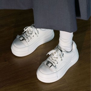 真皮厚底小白鞋女秋季新款时尚百搭简约小个子松糕底增高休闲板鞋
