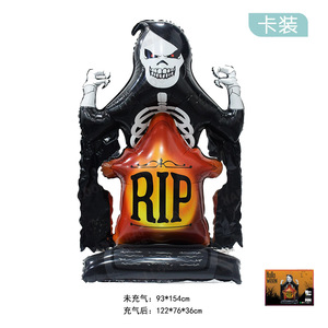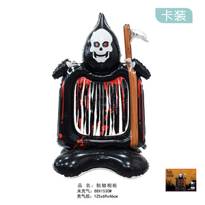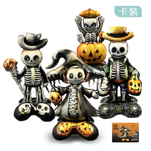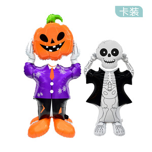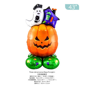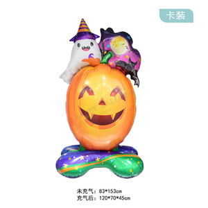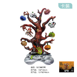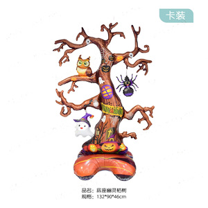 大号1.5米一体站立底座女巫南瓜堆枯树铝膜气球万圣节派对装饰
