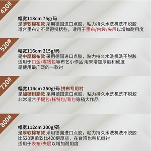手工辅料台湾中统布衬软衬/树脂衬单面带胶520纯棉布衬型衬软衬