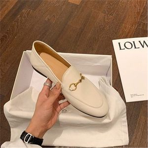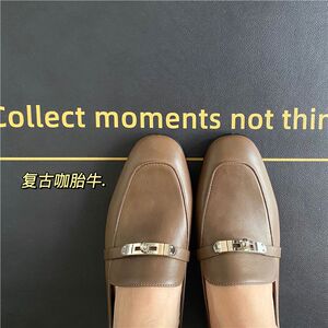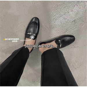 真皮软底两穿小皮鞋女金属扣时尚软妹JK乐福鞋一脚蹬懒人单鞋