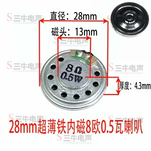 28mm超薄铁内磁8欧0.5瓦喇叭