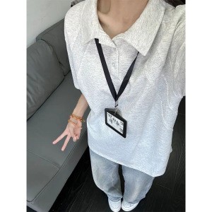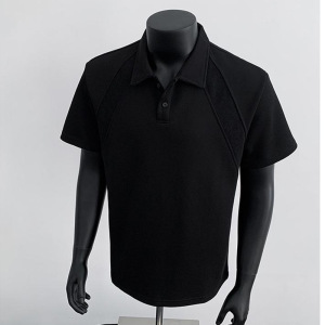 白灰色正肩短袖POLO衫男夏季潮牌痞帅重磅翻领五分袖拼接解构上衣