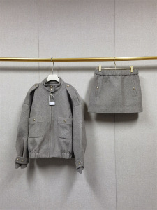 法式小众2025秋冬立领肩扣羊毛夹克外套+松紧腰半裙套装