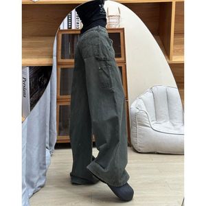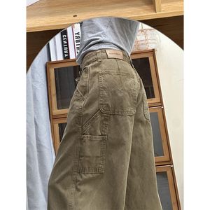 美式复古工装牛仔裤女夏季高腰显瘦百搭设计感直筒阔腿拖地裤子潮